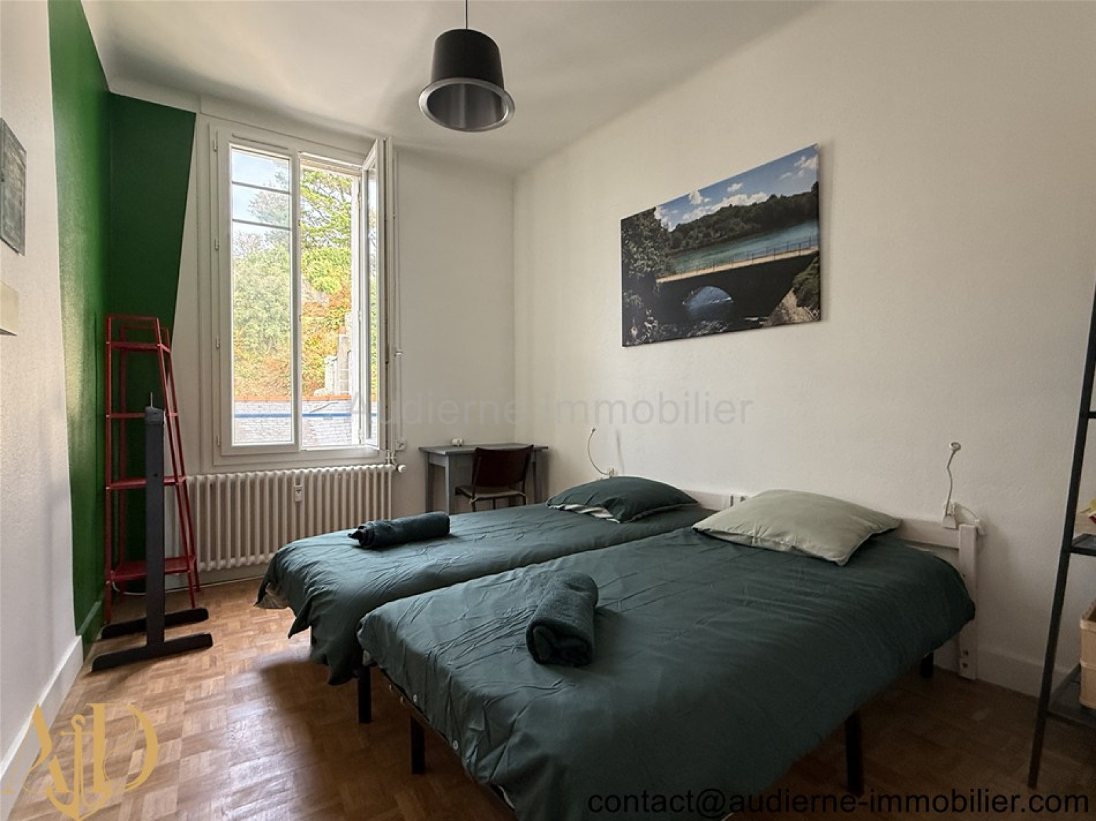 A vendre à AUDIERNE, au coeur du centre-ville, un grand appartement de 4 pièces (3 chambres) au 3ème et dernier étage, très lumineux avec de grandes portes-fenêtres donnant sur la ville et le port.