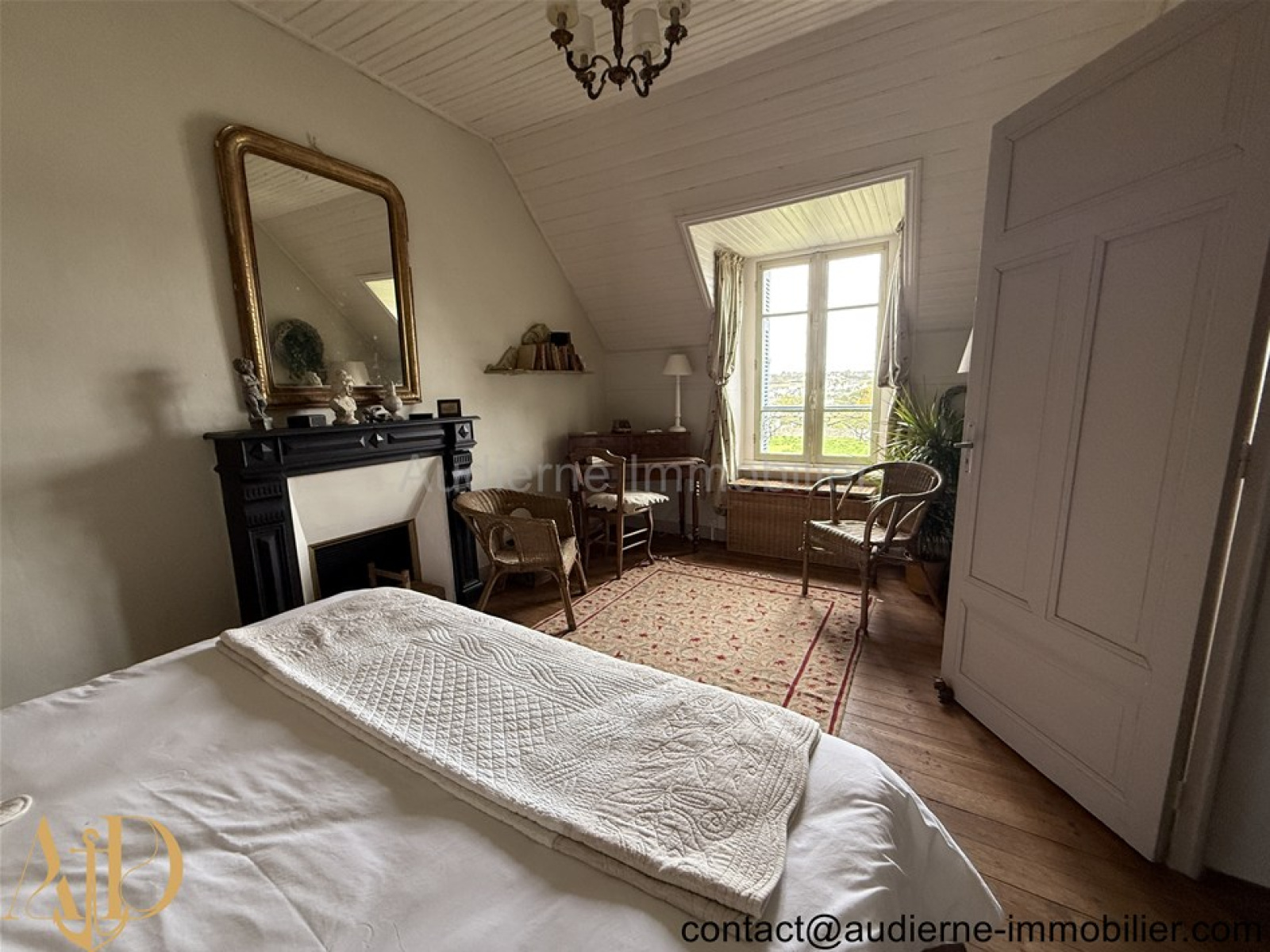 La maison comprend au rez-de-chaussée : une entrée carrelée avec des jolis carreaux de ciment, un salon sur un parquet bois massif entretenu, une cuisine aménagée et équipée traversante vers un sas couloir aménagé en verrière, une chambre agréable, une salle d'eau avec wc et espace buanderie. Au 1er étage : un palier, une grande chambre avec cheminée et une vue agréable sur les toits d'Audierne et un dressing avec velux.