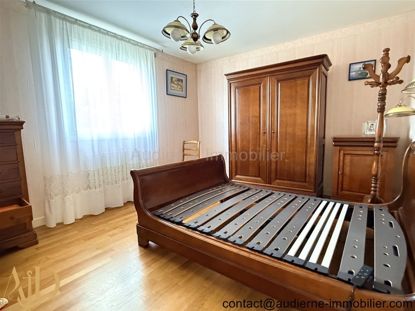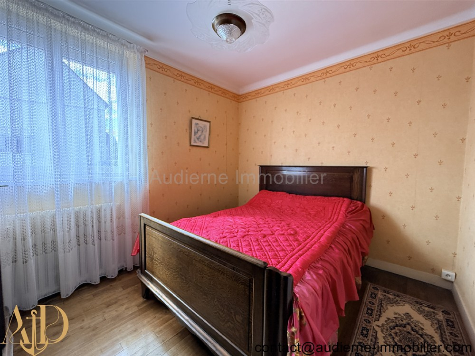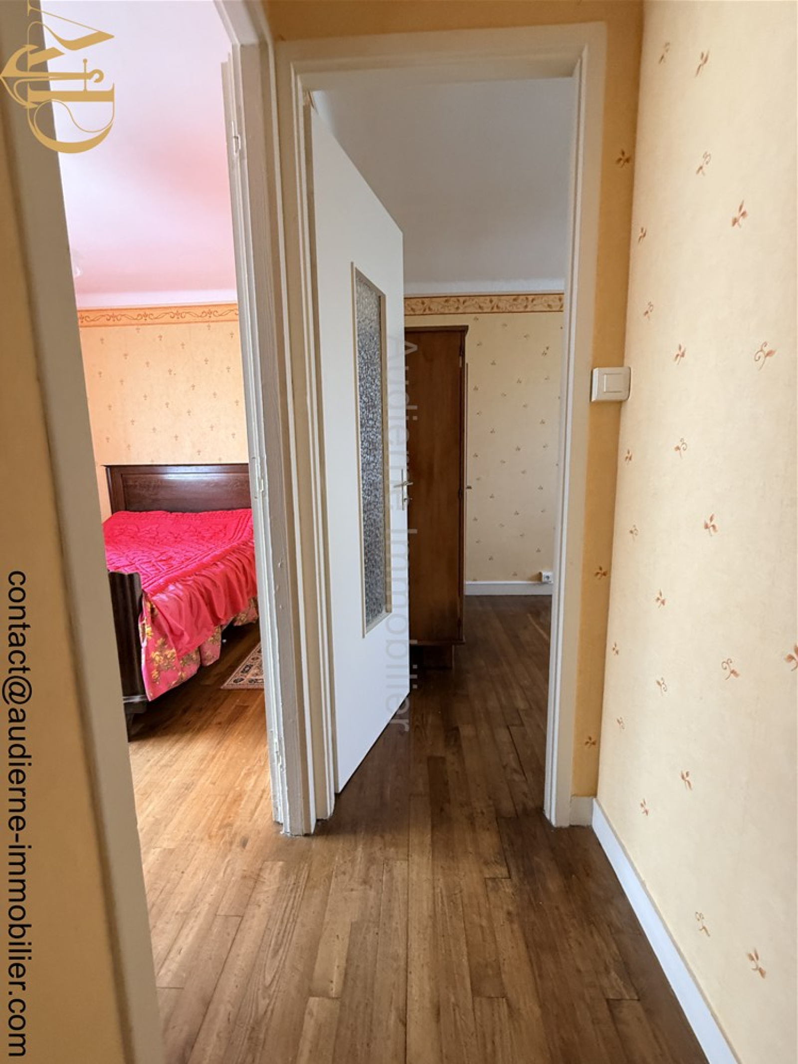 La maison comprend au premier niveau avec quelques marches : Entrée, cuisine aménagée en chêne, salon/séjour sur plancher bois massif, sas avec wc, salle d'eau et quatre chambres.
