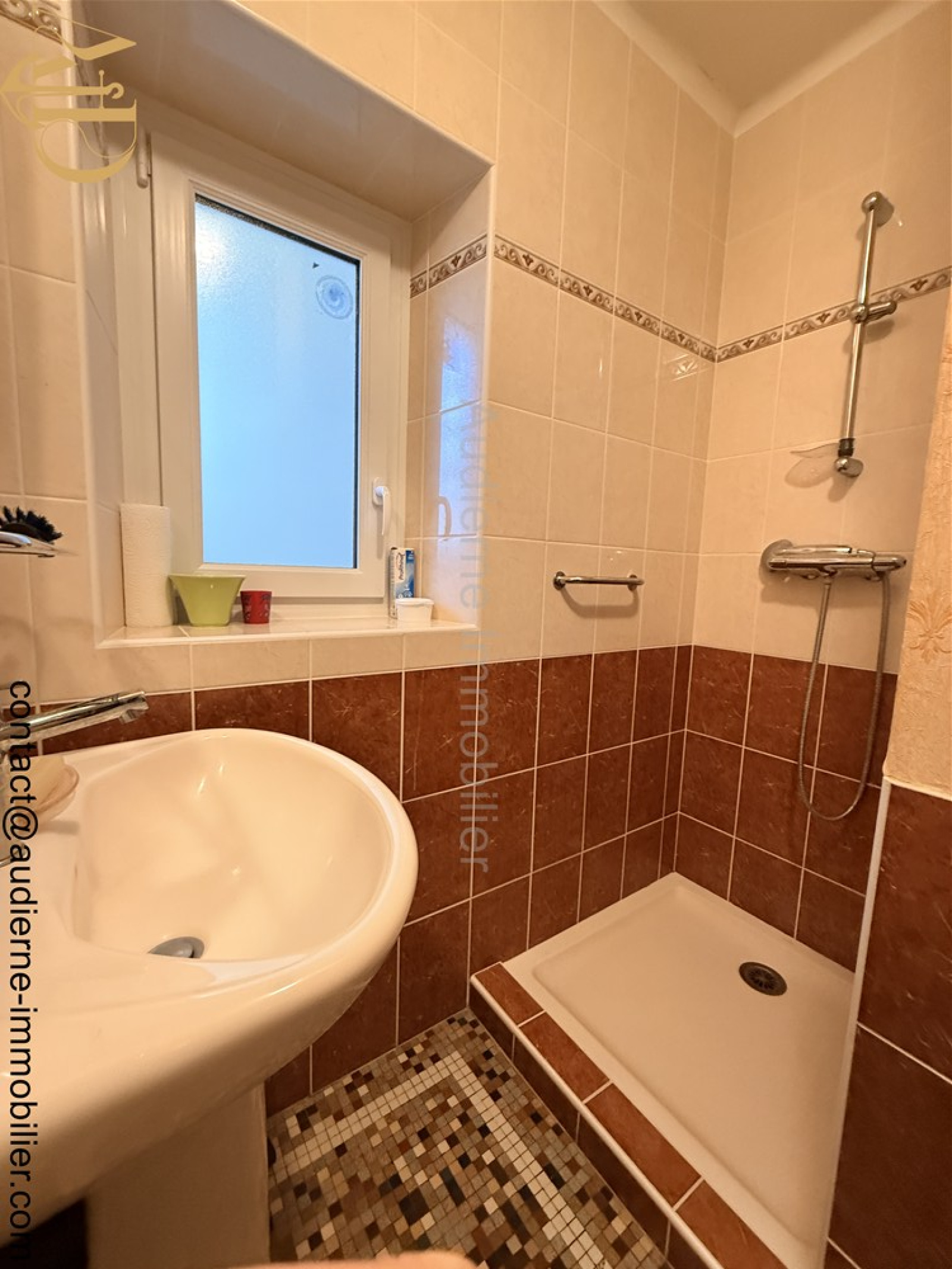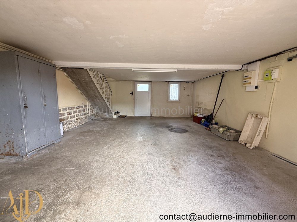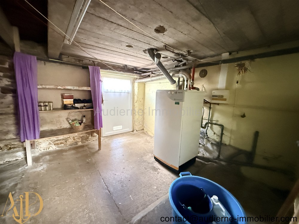 Au rez-de-chaussée - sous-sol : un grand garage avec porte coulissante toute neuve, cuisine d'été, buanderie et chaufferie.