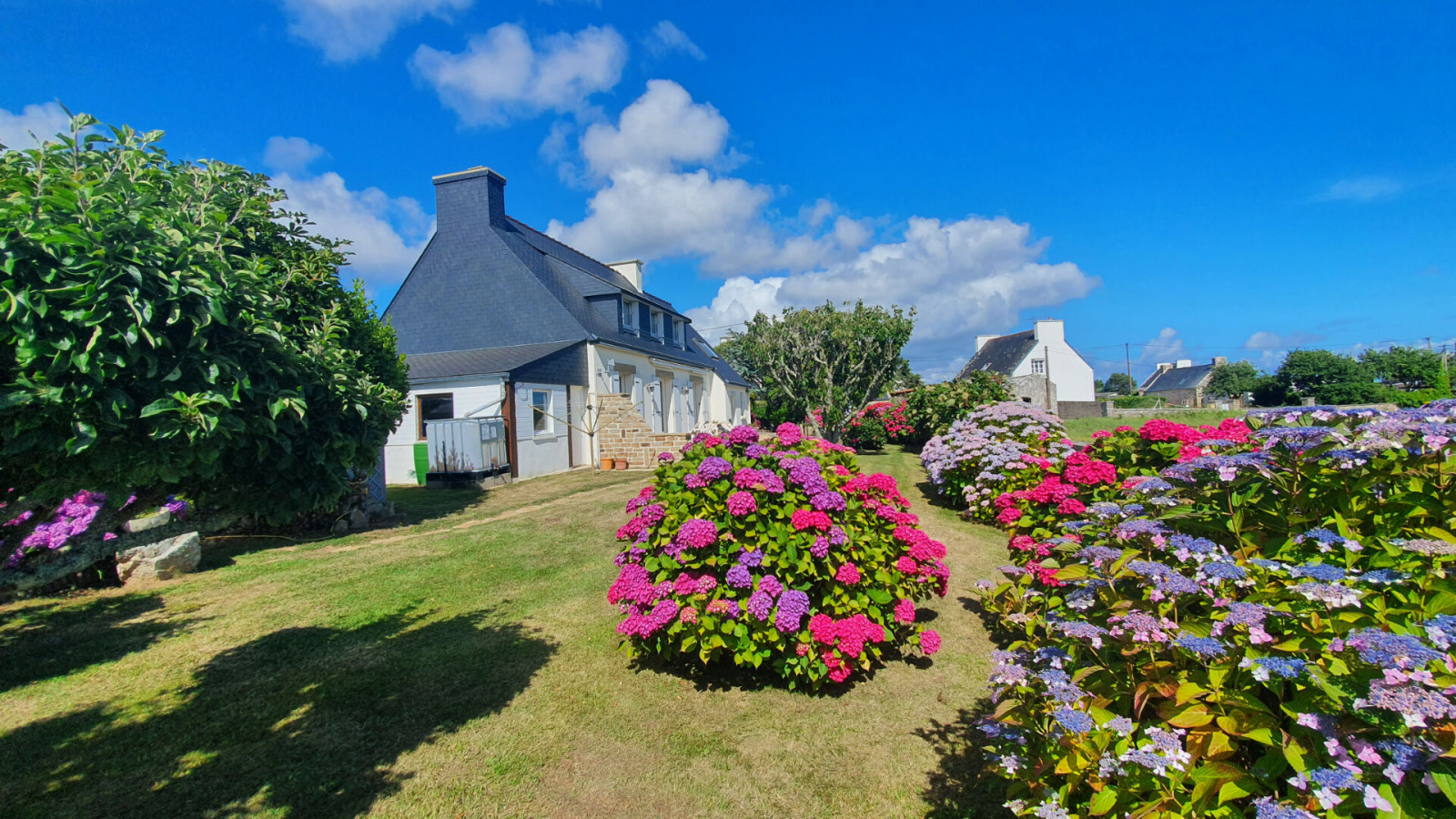 Proche Plage, au calme, Maison comprenant au rdc hall entrée, salon/séjour avec cheminée (insert), cuisine aménagée, cellier, wc. Au 1er étage vue mer, 3 chambres (dont une communicantesavec une grande pièce au-dessus du garage), salle d'eau, wc. Terrasse. 2 Garages. Abri à bois. Abri de jardin. Jardin, verger. Terrain de 1006 m²
