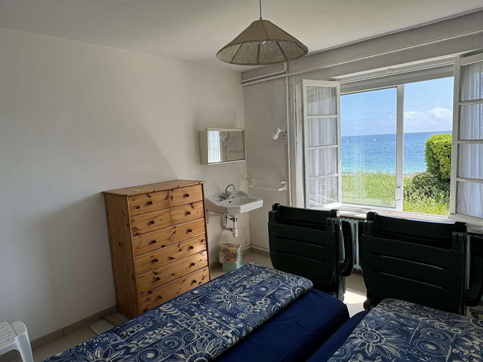 Cette maison comprend au rdc surélevé : entrée, cuisine aménagée, salon, 2 chambres (vue mer), salle de bains, wc. Au 1er étage palier, 2 grandes chambres avec placards et petits greniers. Au rez-de-jardin : entrée, cuisine, 2 chambres (vue mer) avec point d'eau, douche, wc, buanderie, cave. Jardin.