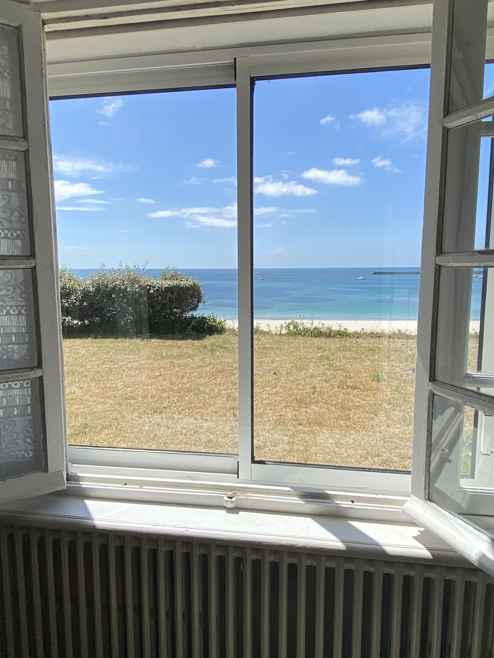 Grande maison familiale en pierres de 1958, bien entretenue et très lumineuse présentant un accès direct à la plage en contrebas du jardin.