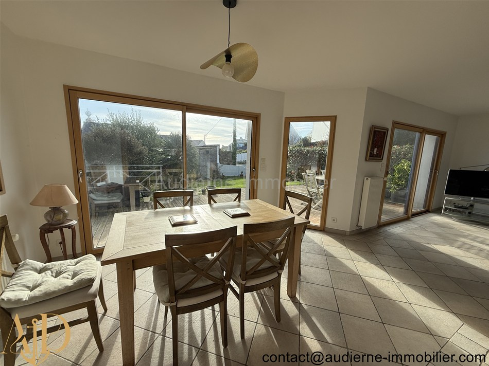 A vendre à AUDIERNE dans le FINISTERE (29), une maison récente de 2008 idéalement placée à moins de 200 mètres de la plage de Trescadec à AUDIERNE. L'endroit est très calme et abrité et la parcelle de terrain est bien orientée avec une vue mer depuis certaine pièces de la maison et particulièrement de l'étage.