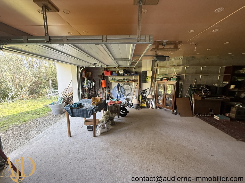 Concernant la maison, il s'agit d'une bonne construction bien entretenue avec des équipement de qualité (chaudière Viessmann, isolation en 300 mm, installation électrique très propre, tout à l'égout, menuiseries en bois/alu double vitrage..). Gros avantage, la maison présente un sous-sol complet et une vie de plain-pied. Les volumes sont très agréables et les pièces de vies sont lumineuses.