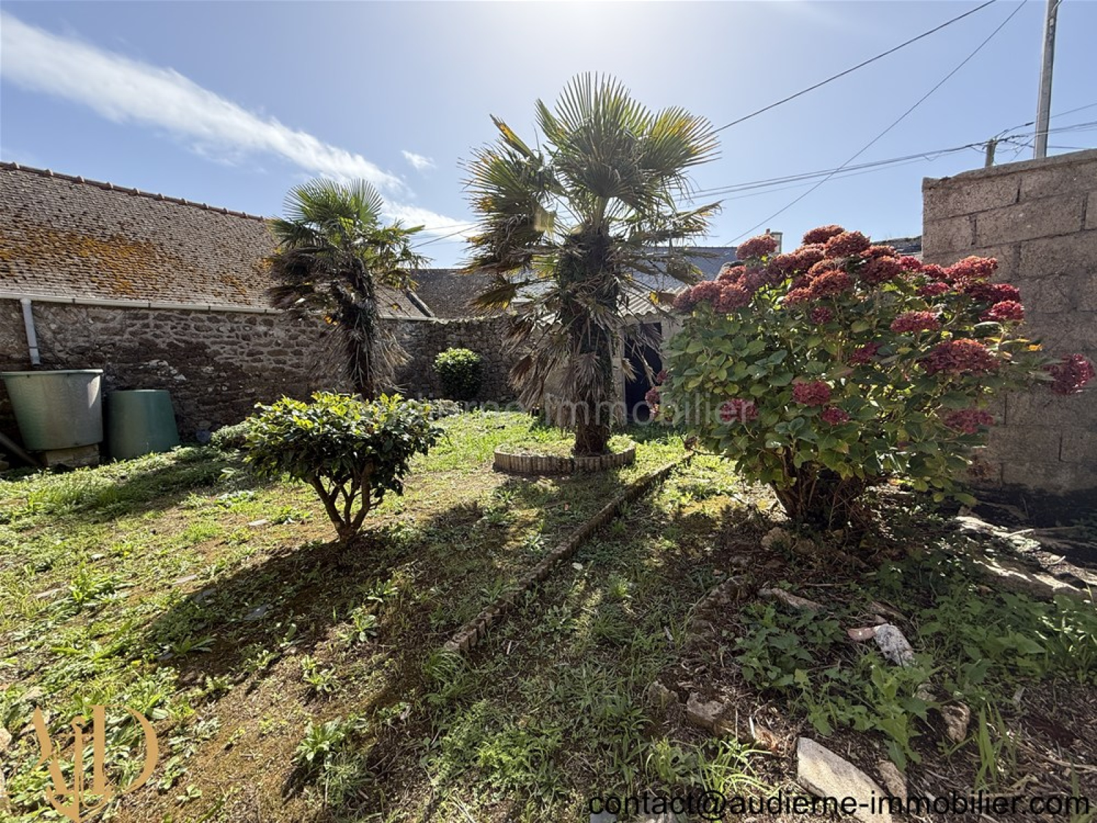 Le tout est sur une belle parcelle de terrain de 830 m², avec plusieurs espaces indépendants et cachés. L'ensemble comprend également une dépendance pour une buanderie (dalle béton propre), un ancienne grange (ti-car) de 43,7 m² au sol avec un étage de 33m² (toiture OK, terre-battue au sol), une ancienne étable de 28,8 m² avec un étage de 15,8 m² (toiture bac acier, pierre concassées au sol).