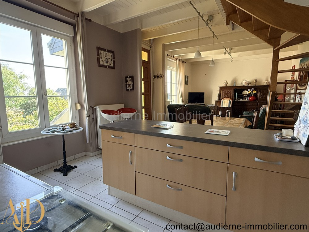 A vendre à PLOUHINEC dans le FINISTERE (29), cette jolie maison de 1951 idéalément placée à proximité immédiate du ports et des commerces d'AUDIERNE. La petite plage de Saint-Julien se trouve quant à elle se trouve à 700 mètres. Une jolie vue est d'ailleur possible depuis l'étage sur l'entrée du port et le Goyen. La maison présente une belle pièce décloisonnée au rez-de-chaussée avec un salon-séjour ouvert sur la cuisine aménagée et équipée. A l'étage deux chambres avec une salle d'eau et un WC. Demi sous-sol et garage disponible.