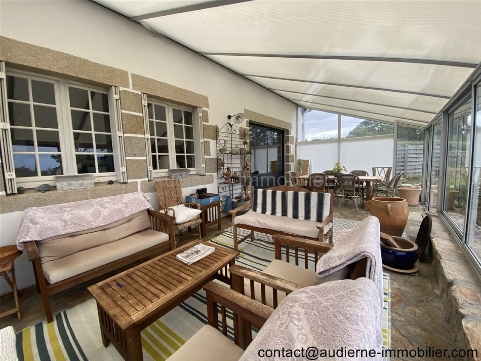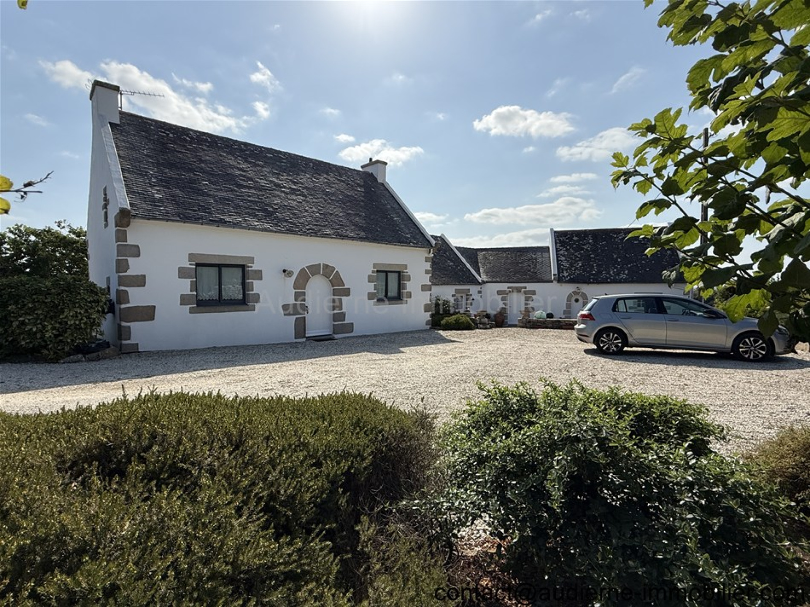 Une grande maison construite dans les années 60 sur une belle parcelle de terrain de plus de 5.000 m². L'ensemble se place dans un endroit calme et très recherché, à proximité immédiate des sentiers côtiers et de la plage de Mesperleuc (900 m). Une vue sur la mer sur la baie d'AUDIERNE (au Sud-Ouest) est possible depuis toutes les pièces de cette habitation.