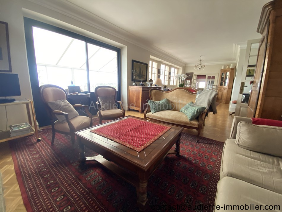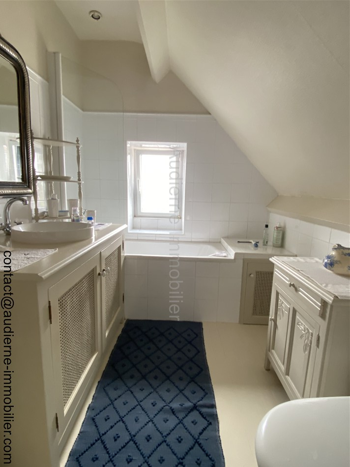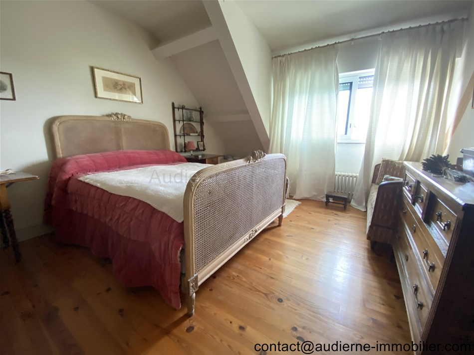 La maison est une bonne construction (maison de maçon), très bien entretenue et certains aménagements récents et bien réfléchis pemettent un vrai confort de vie. Elle comprend au rez-de-chaussée : une entrée indépendante, une belle pièce de vie salon/séjour, ouvrant sur une veranda au Sud, une cuisine aménagée et équipée, une arrière cuisine (faisant office de buanderie et chaufferie), un grand bureau entièrement vitré (vue ++), un WC sous escalier avec lave main, un couloir menant vers le garage avec une porte électrique et ayant au 1er étage une chambre avec sa salle d'eau et WC. Au 1er étage de la maison : joli palier aménagé de nombreux rangements et placards, 3 chambres, une salle d'eau avec son WC.