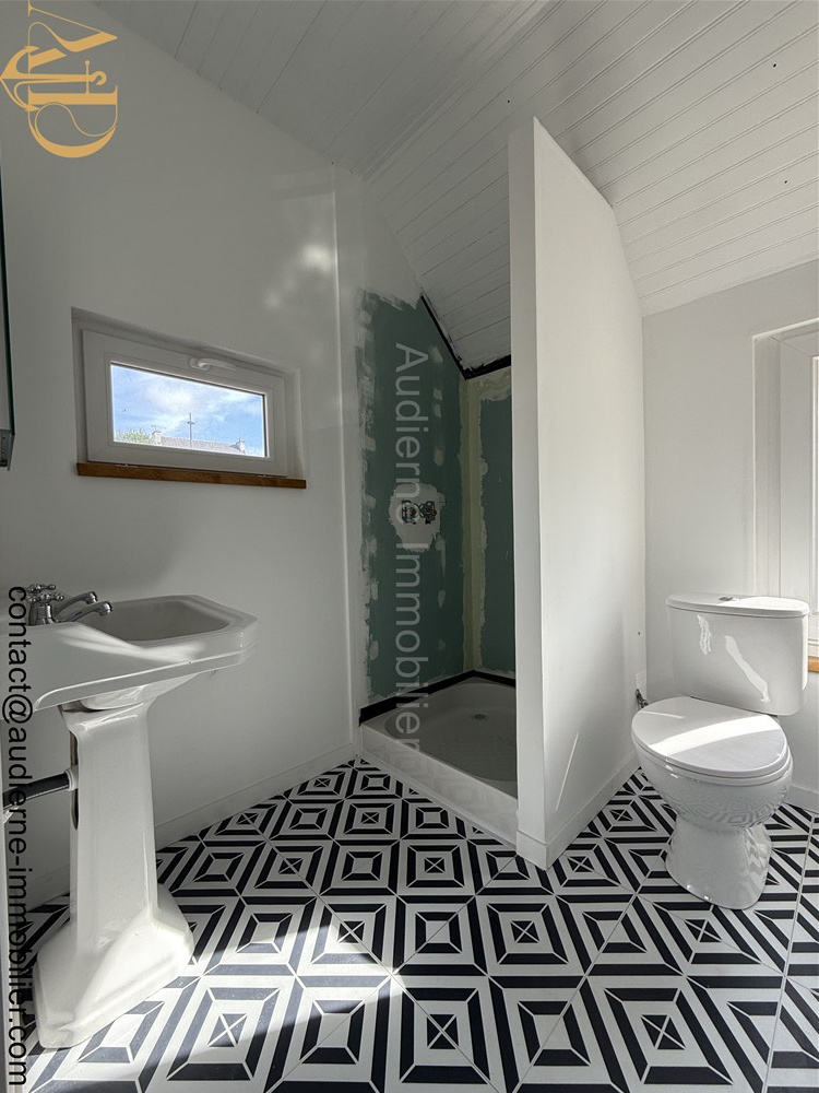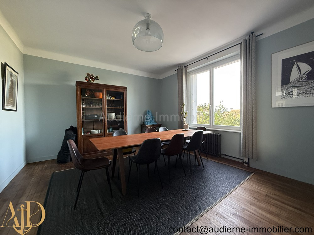 Cette maison est idéalement située à 500 mètres du bord de mer et de la plage et à environ 900 m du centre-ville d'AUDIERNE. La maison présente l'avantage d'avoir été entièrement rénovée avec gout et des matériaux de qualité en 2020 (portes et fenêtres, chauffage pompe à chaleur, isolation des combles, électricité refaite...). Elle présente de belles hauteurs de plafond, une belle lumière et une jolie vue sur les toits et le port d'Audierne.