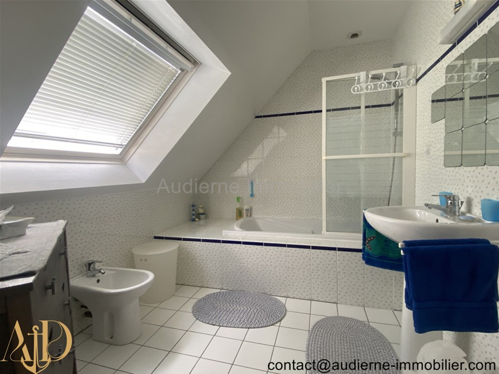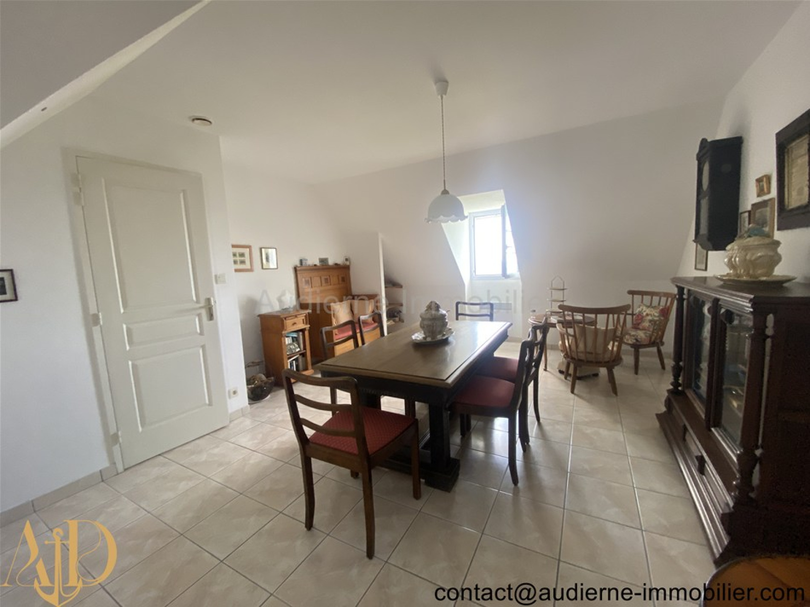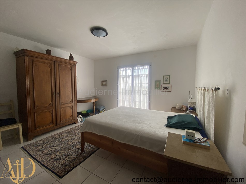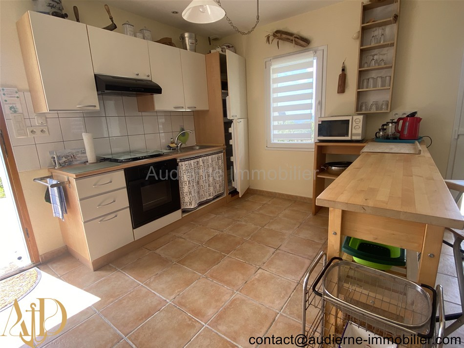 Elle comprend au rez-de-chaussée : Entrée (6,5 m²) avec grand placard (1,2 m²) et escalier, salon / séjour avec une cheminée insert et deux portes fenêtres (30,4 m²) -> vue magnifique sur mer, cuisine aménagée et équipée (10,9 m²), chambre (16,5 m²) avec un accès vers une salle d'eau centrale partagée, chambre (9,15 m²) avec un accès vers une salle d'eau centrale partagée, salle d'eau centrale entièrement carrelée (3,53 m²), WC + lave main (1,2 m²). A l'étage : Palier aménagé en coin kitchinette (6,5 m²), deux chambres carrelées (10,4 et 9,8 m²), salle de bain (4,6 m²), WC + lave main (0,6 m²), une pièce séjour mansardée et entierement carrelée (18,8 m²), chambre en enfilade au dessus du garage (10 m²)